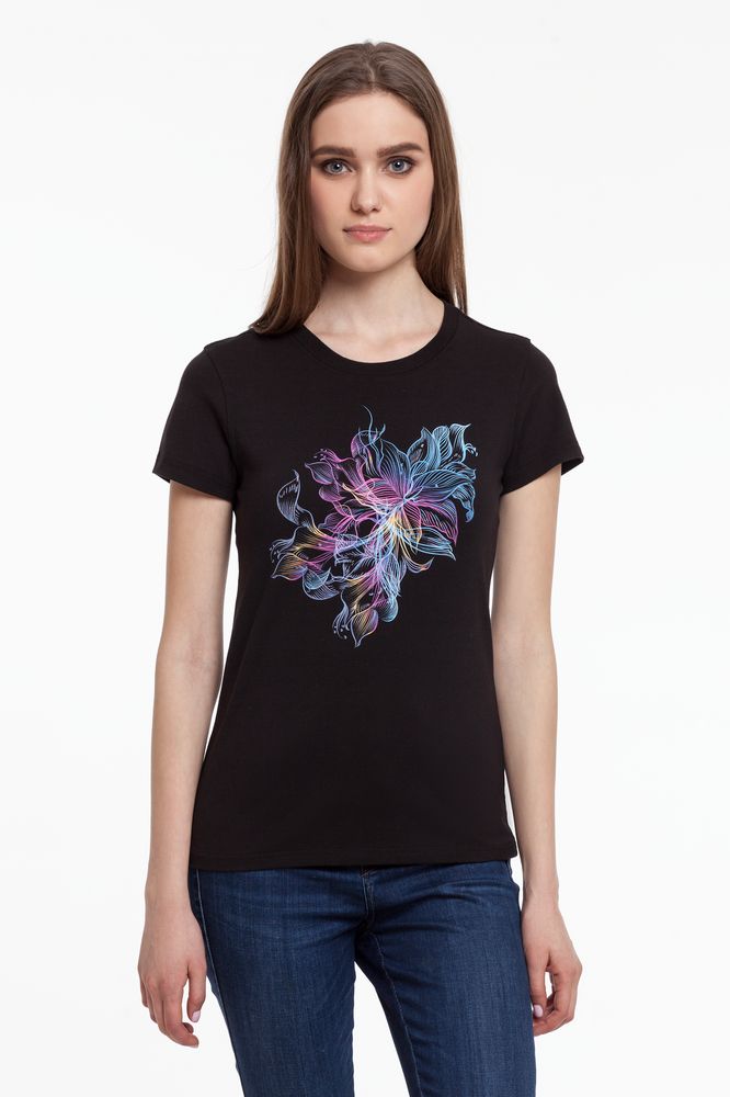 Приталенная женская футболка стретч высокого качества.- Гребенная пряжа: прочная и долговечная.
