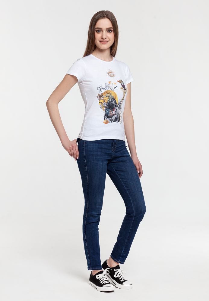 Принт выполнен светонакопительной краской, которая вбирает свет из внешних источников (естественных или искусственных) и светится в темноте.Модель без боковых швов, стиль классический, унисекс.